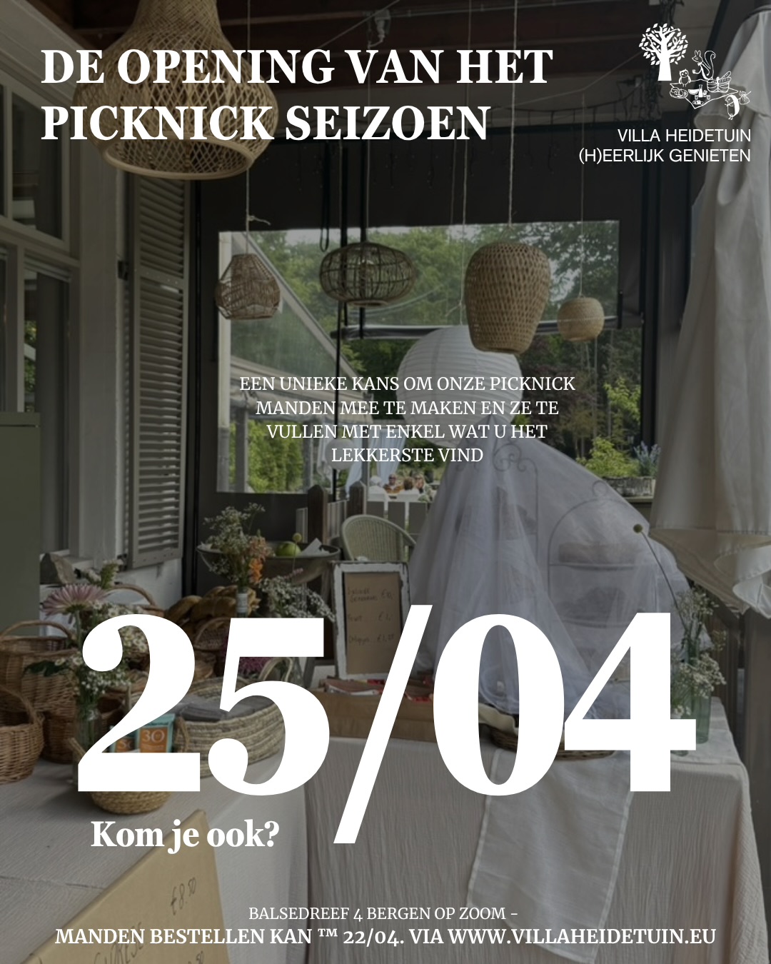 Wij zorgen dat de mand klaar staat! Wees er tijdig bij want we hebben een beperkt aantal luxe picknickmanden op voorraad.